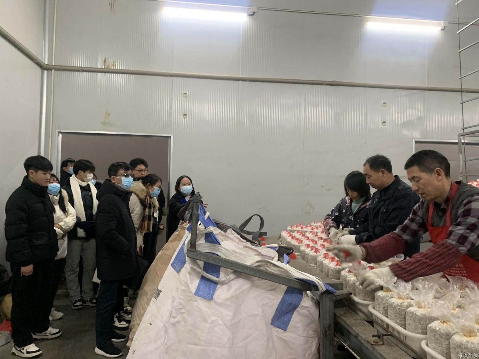 在企业负责人的带领下,一行人先后参观了企业生产车间、研发中心、办公空间以及生活区等地,工作人员介绍了菌菇生产流程及企业相关信息。江苏国耳生物科技有限公司,成立于2018年,占地100亩,利用先进的信息化技术将杏鲍菇、真姬菇、鹿茸菇等珍稀菇类的生产、研发、销售、旅游融为一体,实现“一、二、三产业”三产融合。企业拥有专利20项、自动化著作权14项,先进的自动化、智能化生产以及前沿的研发技术能够为学生提供良好的实习平台。