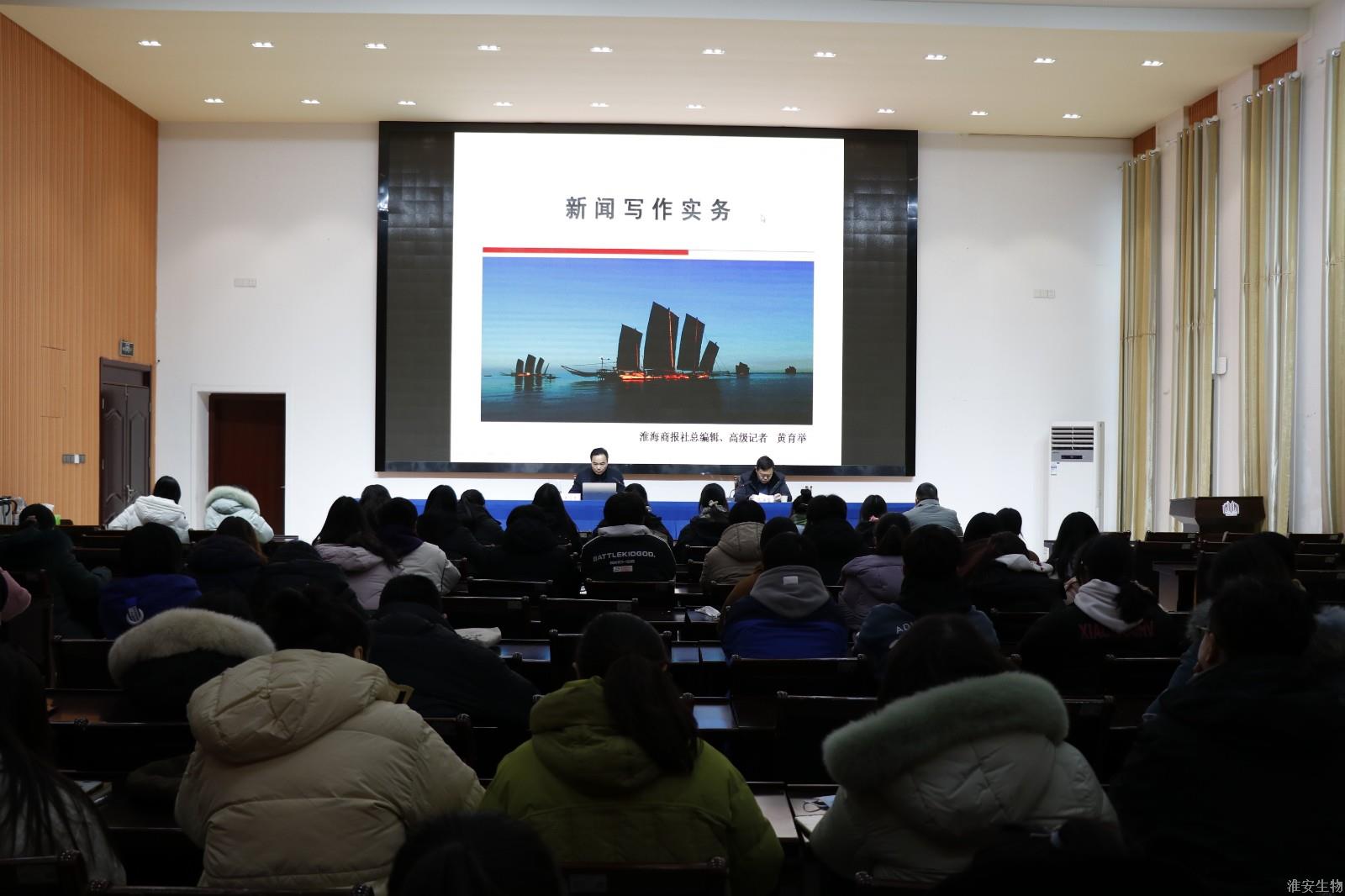 为落实全市宣传思想文化工作会议精神,进一步提升全校新闻宣传队伍业务素质,根据校党委要求,12月20日下午,淮安生物工程学校在新农业实训楼124会议室举办新闻写作实务专题培训,特邀淮海商报社总编辑、高级记者黄育举到场做专题辅导。副校长沈涵哲主持本次培训,各党支部宣传委员,各处室、系部通讯报道员,各系部教学秘书,各系部团委书记和部分优秀学生代表参加培训。