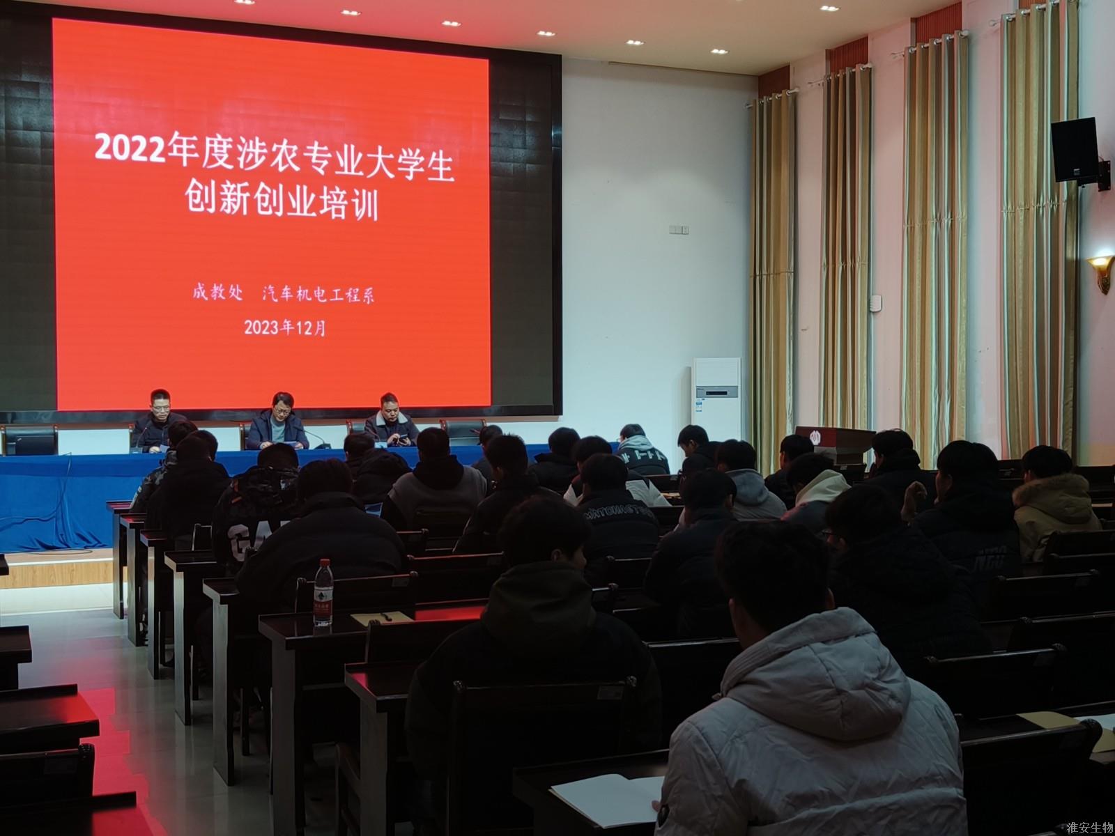 为培养学生创新创业意识、激发学生创新创业热情、提高学生创新创业能力,我校汽车机电工程系自2023年12月14日-12月18日起,在学校农机实训楼301举办为期一周的2022年度涉农大学生创新创业培训,成人教育处处长胡春林、汽车机电工程系副主任陈友明、农装高2001班主任钱勇老师等出席了开班仪式。