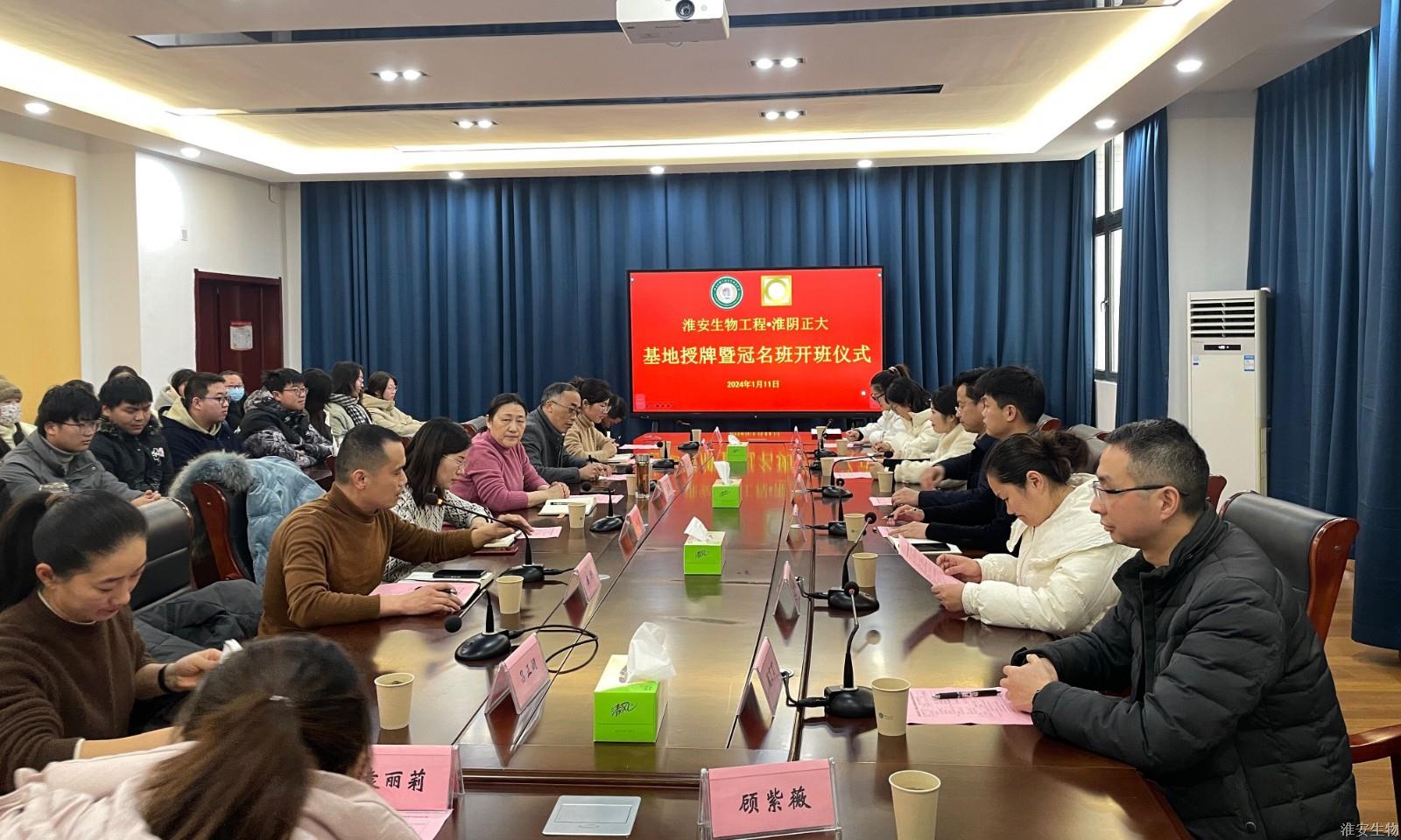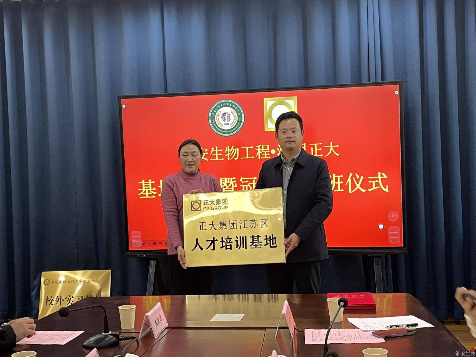 2024年1月11日,淮安生物工程·淮阴正大授牌暨冠名班开班仪式在我校农业实训楼119会议室正式启动,江苏淮阴正大有限公司总经理姜兴海、人力专员吕林、薄涵文、许延文莅临我校参加仪式;淮安生物工程学校副校长禹立馨、招生就业处处长宗小平、合作交流处副处长朱美荣、动物工程系主任陈剑以及相关老师、班主任和27名冠名班同学等参加了本次活动。