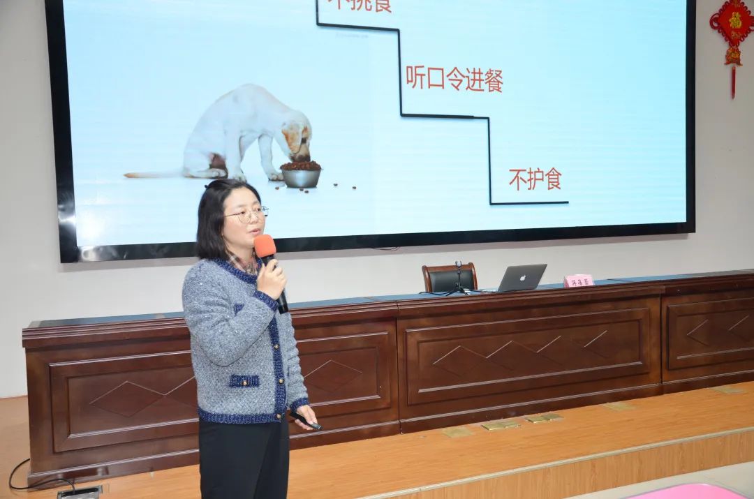 淮农周末小课堂第二期《犬的行为训练·护食行为的纠正》由动物系副教授蒋蓓蕾主讲。蒋老师主要从护食概念及表现、犬护食行为产生的原因、护食行为的矫正等方面进行详细讲解和示范操作。讲座结束后,蒋老师又回答了现场听众关于犬的训练等问题。
