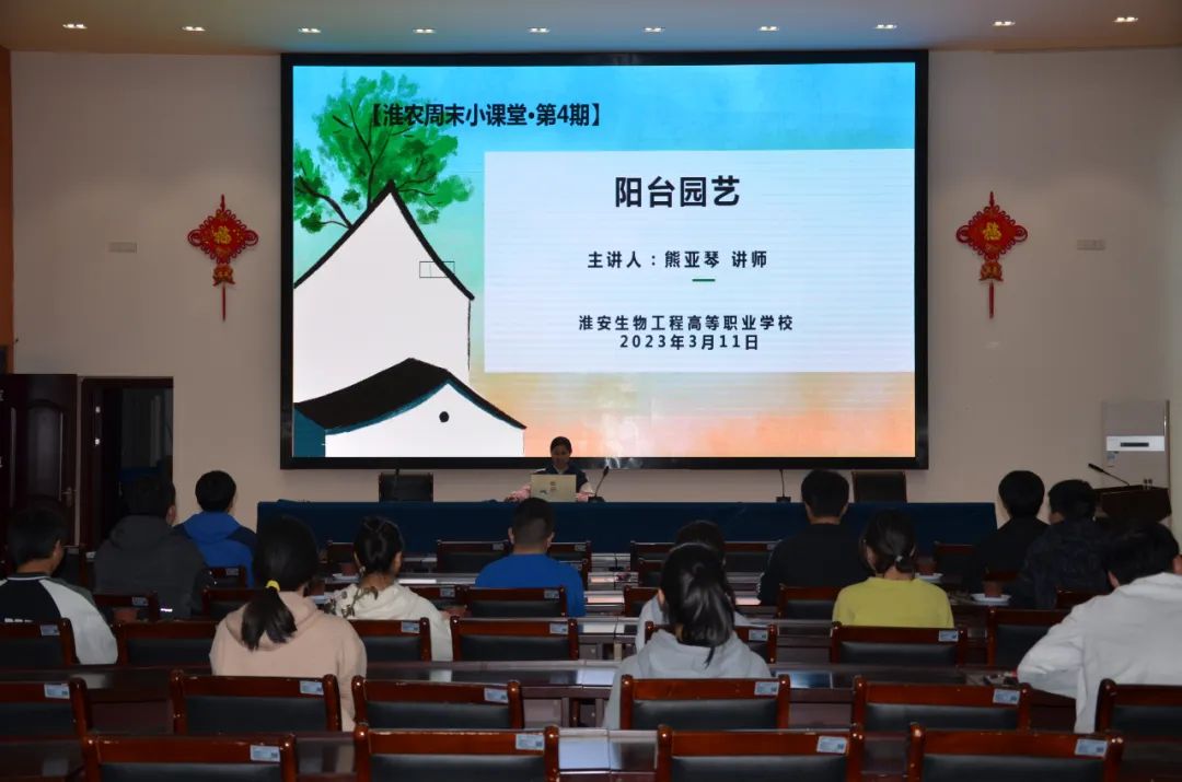 淮农周末小课堂第四期《阳台园艺》由植物系讲师熊亚琴主讲。熊老师主要从阳台的特点、花卉的选择、常见花卉养护和繁殖方法等方面进行详细讲解。讲座结束后,熊老师又回答了现场听众关于家庭盆栽月季修剪等方面问题。