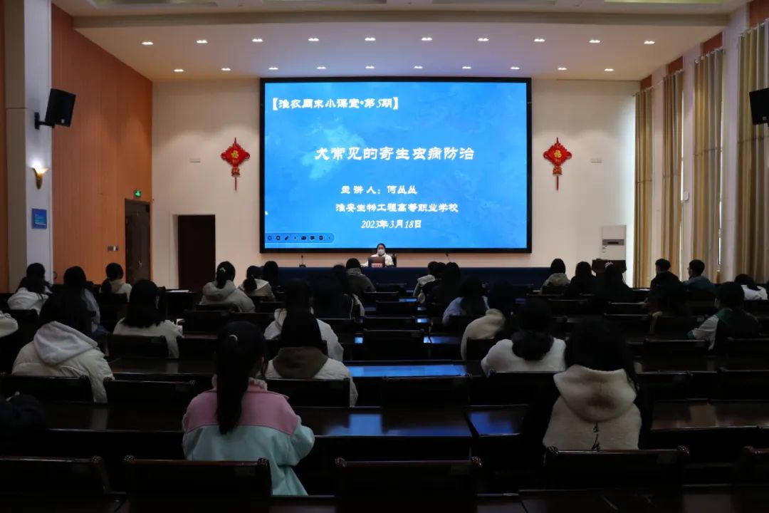 3月18日下午,淮农周末小课堂第5期在农业实训楼124会议室如期开讲,动物医学教研室主任高录贵和校内外宠物爱好者参加讲座。