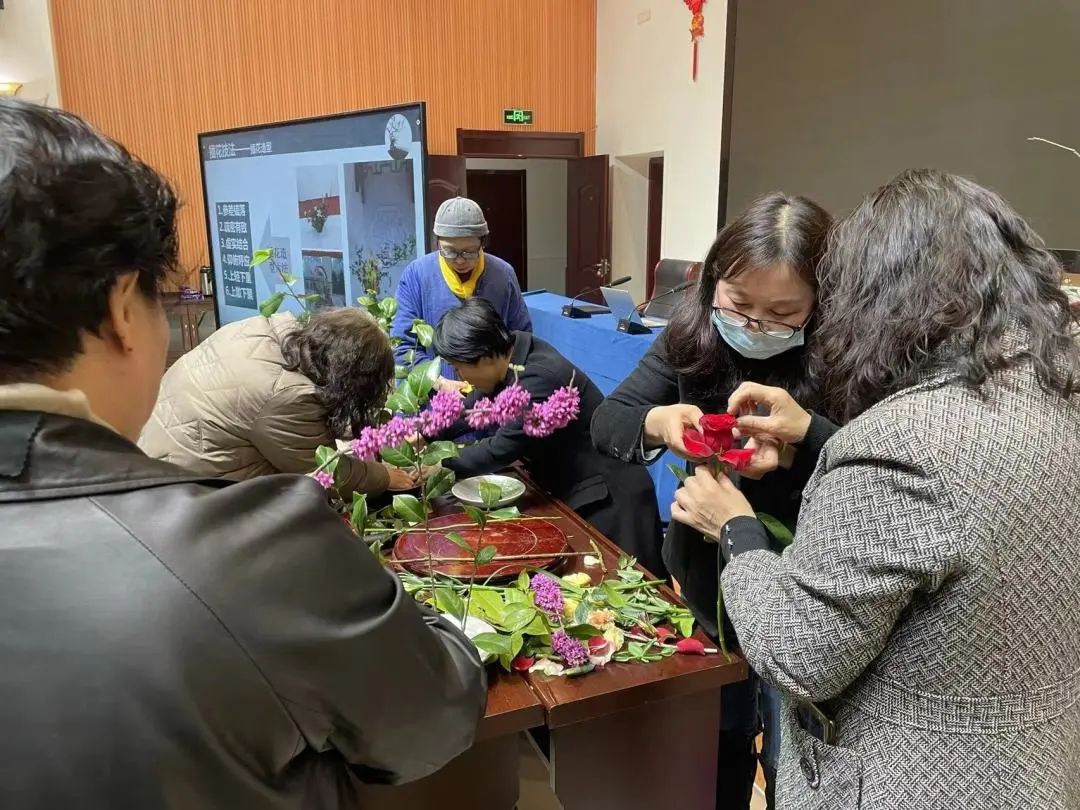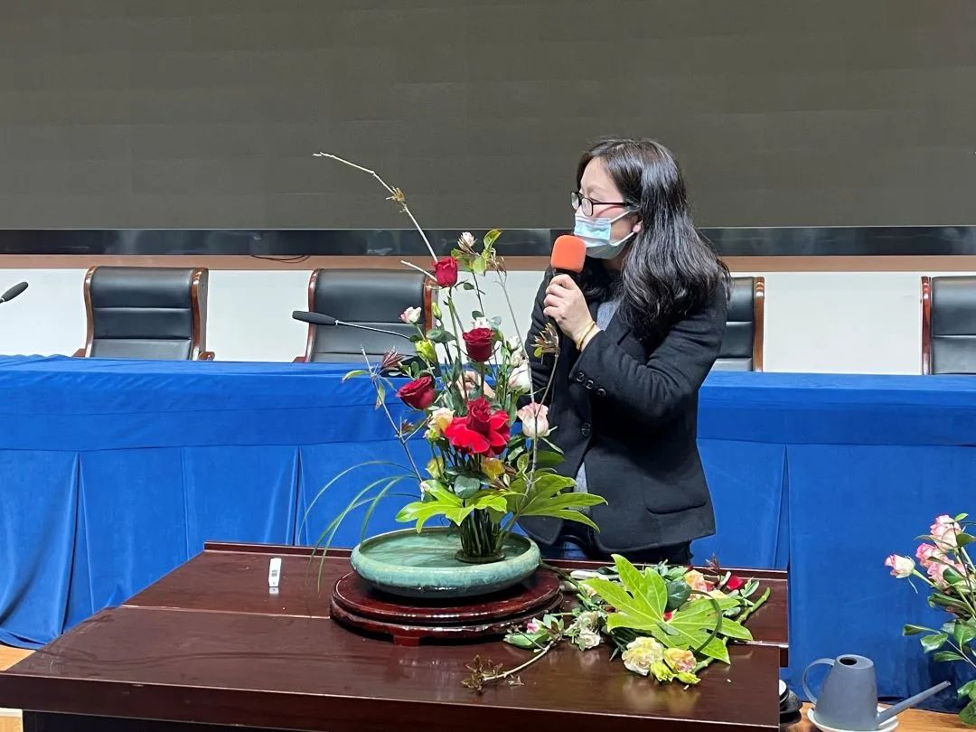 本次《芳华优雅,精彩生活——盘花制作》周末小课堂由植物工程系赵玉春副教授主讲。赵老师对插花艺术进行了概述,并且现场展示了花材的固定方式、鲜切花保鲜处理、插花技法等技能。同时邀请与会嘉宾共同参与盘花作品的制作过程。通过本次讲座,大家不仅收获了有关盘花制作的技能知识,还实际参与了盘花制作的过程。参加人员纷纷表示收获颇多,并对系列讲座接下来的内容表示期待。