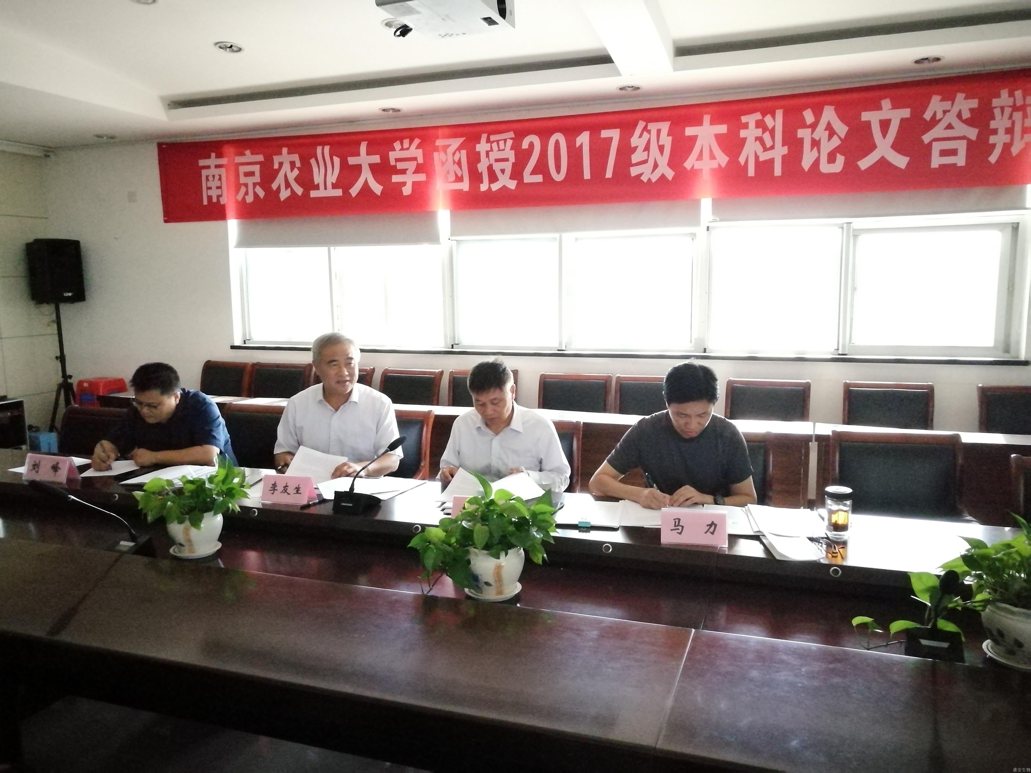 本次毕业生论文答辩前成教处工作人员精心安排,根据论文选题方向及学生人数,将18位教师分为5个答辩小组,分设在学校行政楼会议室、新农业实训楼教室等不同的答辩场所有序开展。南京农业大学继续教育学院李友生院长、办公室主任董志昕和教务科徐风国科长参加此次答辩全部过程。答辩工作布置会上南农大李友生院长从严格要求、规范过程、把关质量三个方面对参加答辩老师提出相关要求。