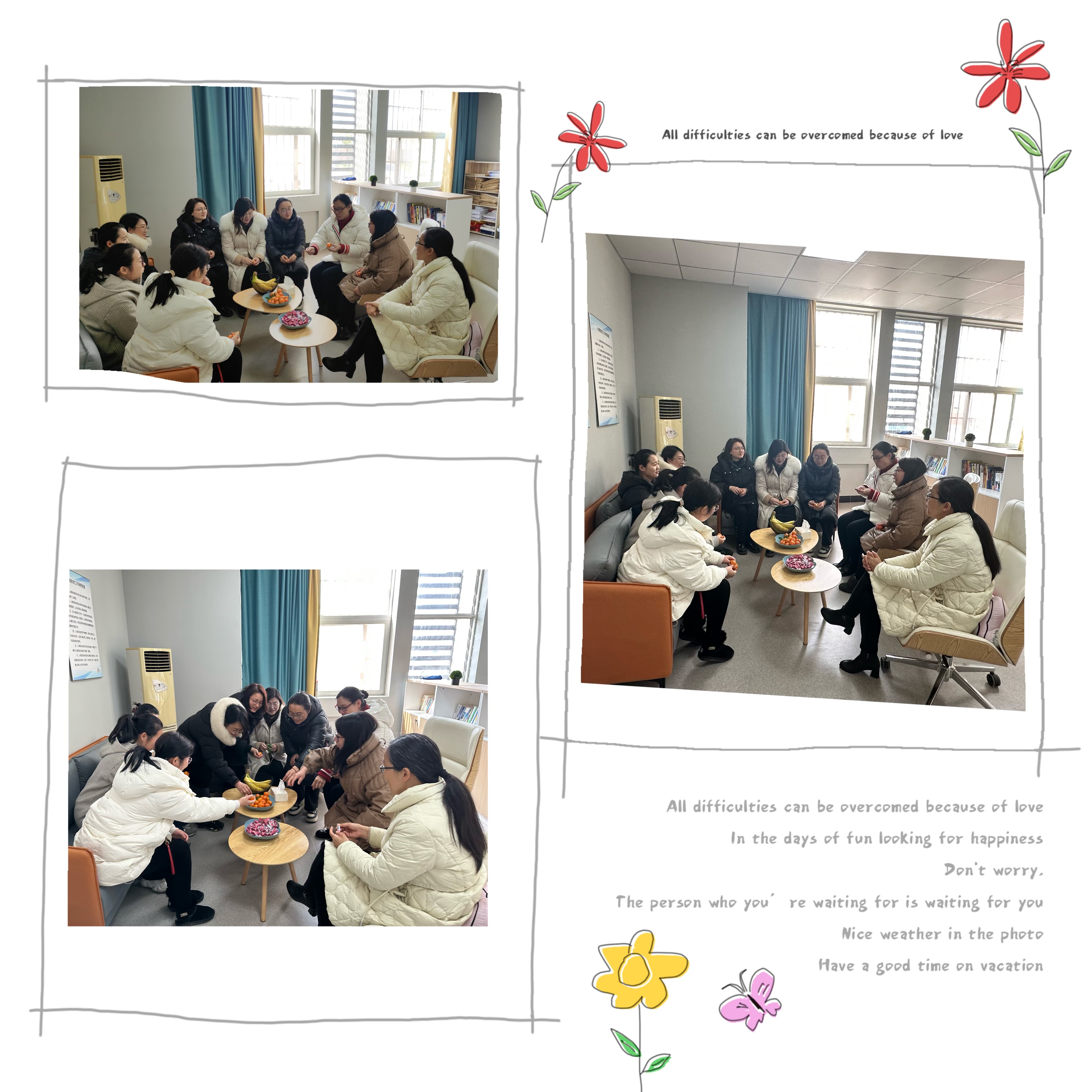 在预约接待室,班主任们围坐在一起,共话班级学生管理、分享生活趣事,欢声笑语,气氛热烈。