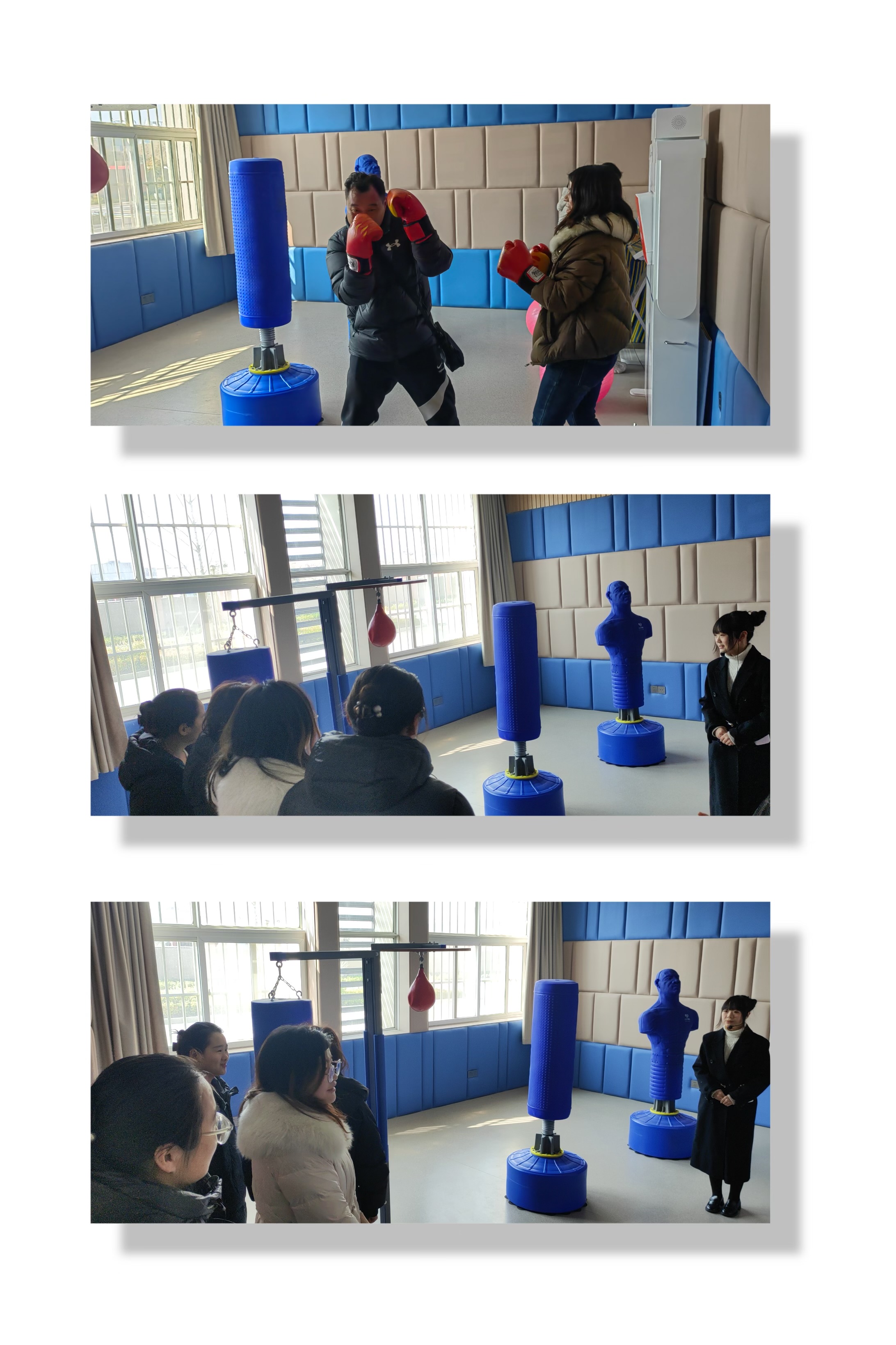 随后,班主任们在学生讲解员的引导下,参观了团体活动室、个体咨询室、影音播放室、运动宣泄室、情绪宣泄室、沙盘游戏室等功能室。参观结束后班主任们全身心的参与了设备体验。