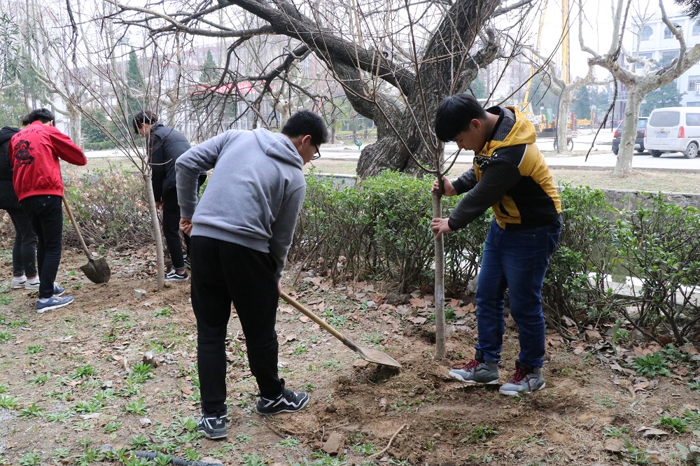 启动仪式后,同学们在老师的带领下前往植树地点,挖土、植苗、填坑……在植物工程系师生的指导和协助下,各个班级的代表郑重的将一棵棵小树苗放进了土坑,培土,踩实,浇水……经过有条不紊的劳作后,小树苗在校园的泥土里站正了身体,准备好茁壮成长。在午后的阳光下,同学们那一张张年轻的脸青春飞扬,一双双清澈的眼瞳里流露出的是发自内容的喜悦与殷切。