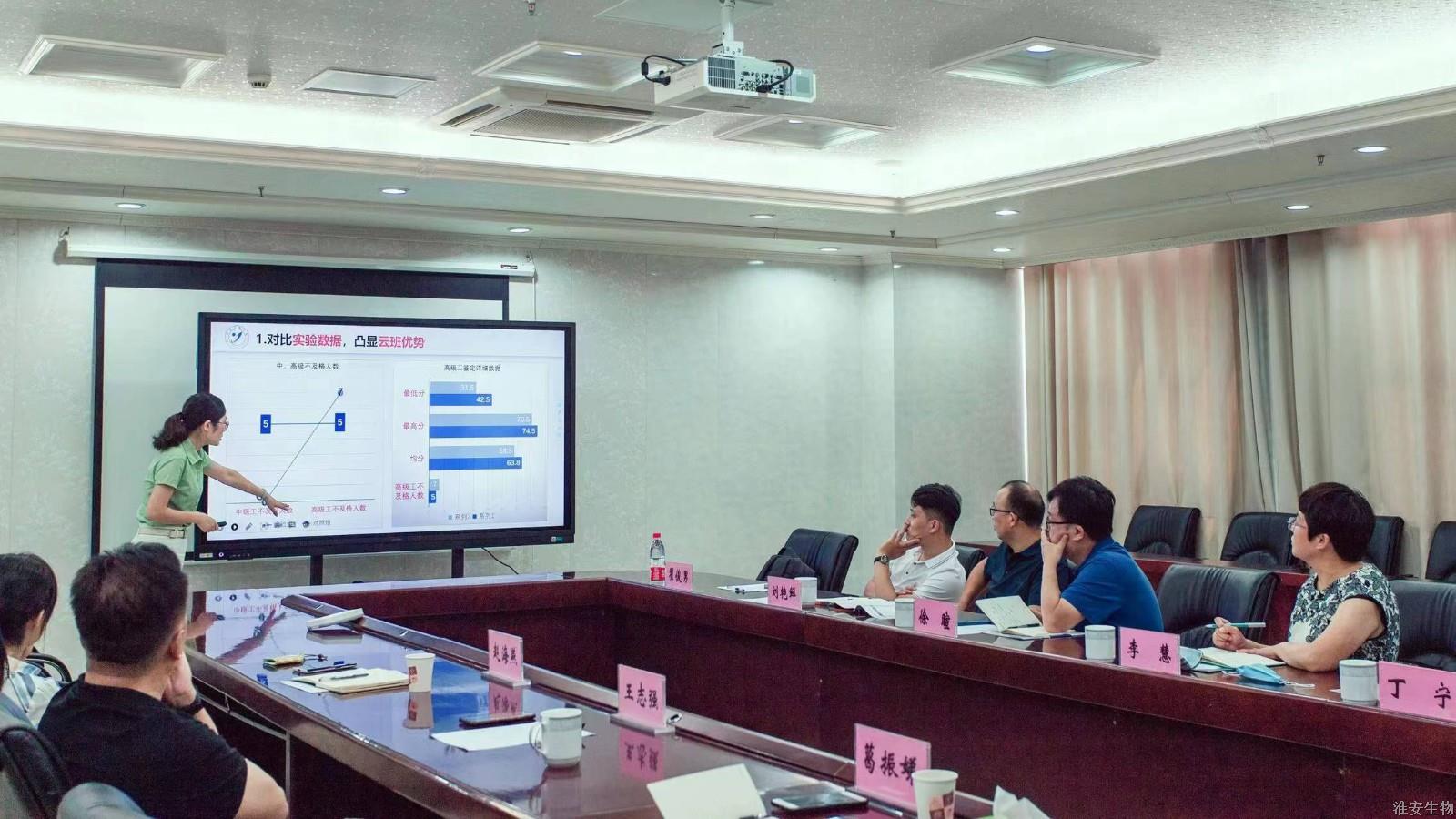会议上,仪征技师学院教研室葛振娣主任详细介绍了云班课教学、云教学大数据管理及云教材建设的总体情况,并通过案例展示了开展课堂教学现代化以来取得的一系列成效。
