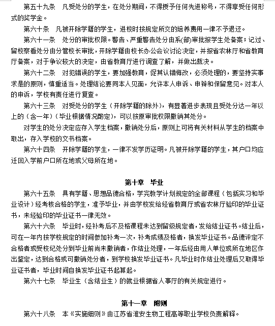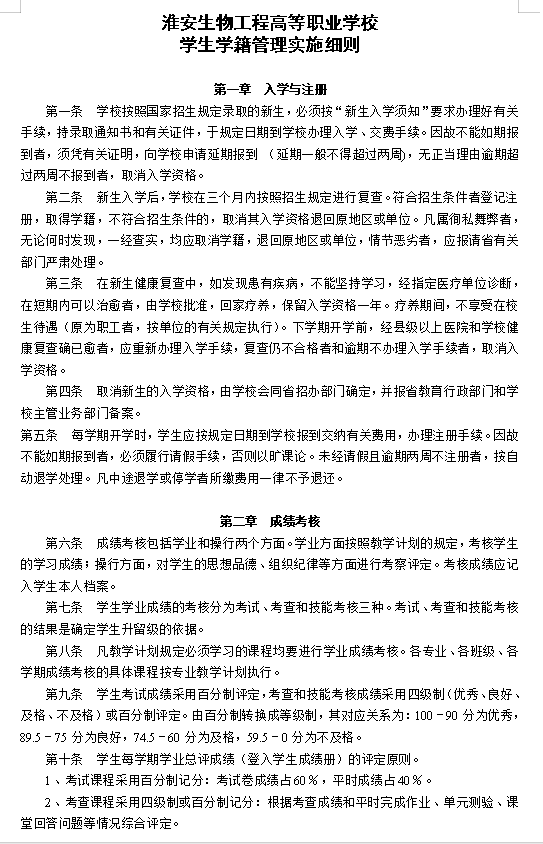 淮安生物工程高等职业学校 学生学籍管理实施细则