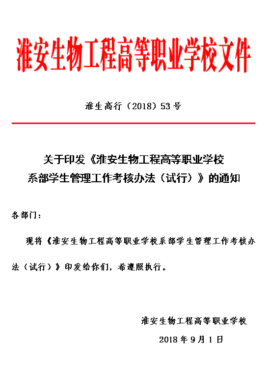 根据每学期考核总成绩得出学年考核成绩,对学年考核前三名的系部表彰为学生管理工作先进集体,分别奖励获奖系部经费12000元、10000元、8000元,用于奖励该系部管理人员及优秀班主任(经费来源见《关于印发淮安生物工程高等职业学校班主任评聘、考核及津贴发放办法(试行)的通知》(淮高生行[2018]52号])。
