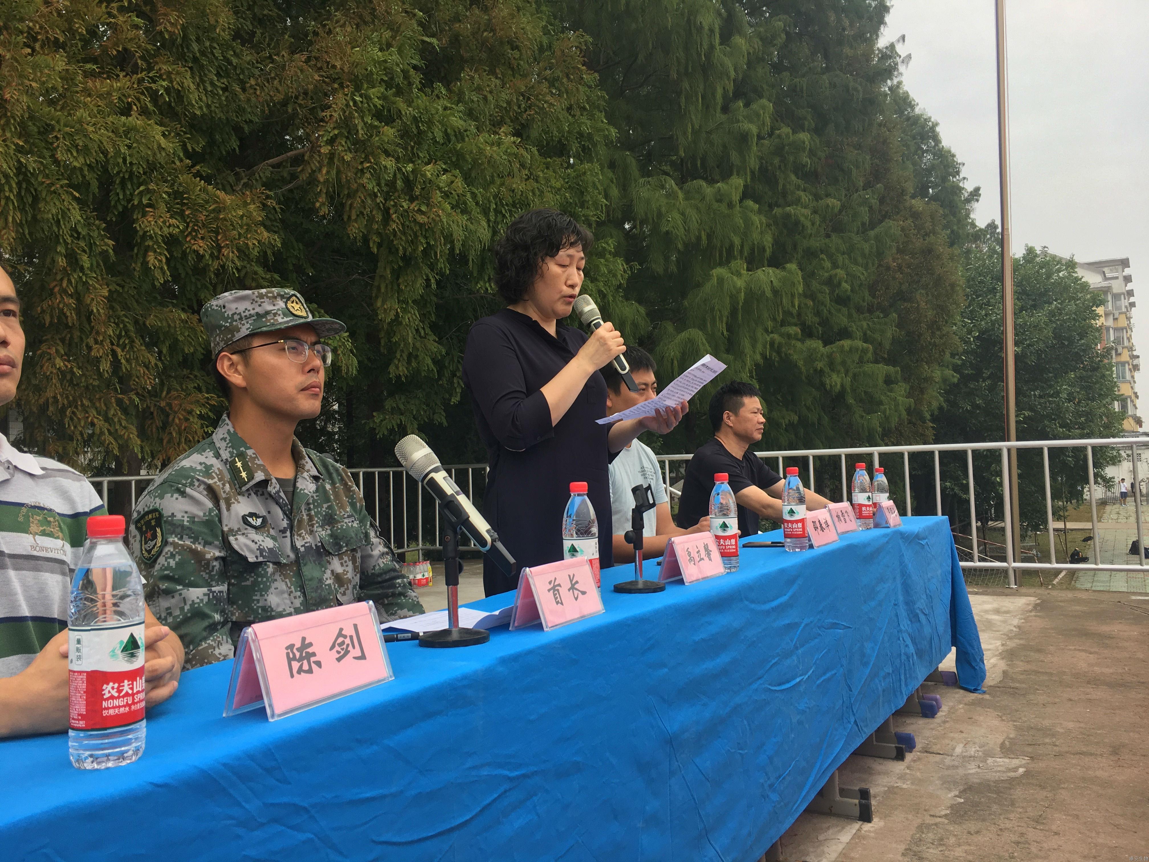 首先,人武部首长潘参谋发表讲话,他要求新同学学会吃苦耐劳,严格要求自己,向教官们学习,服从命令听指挥。