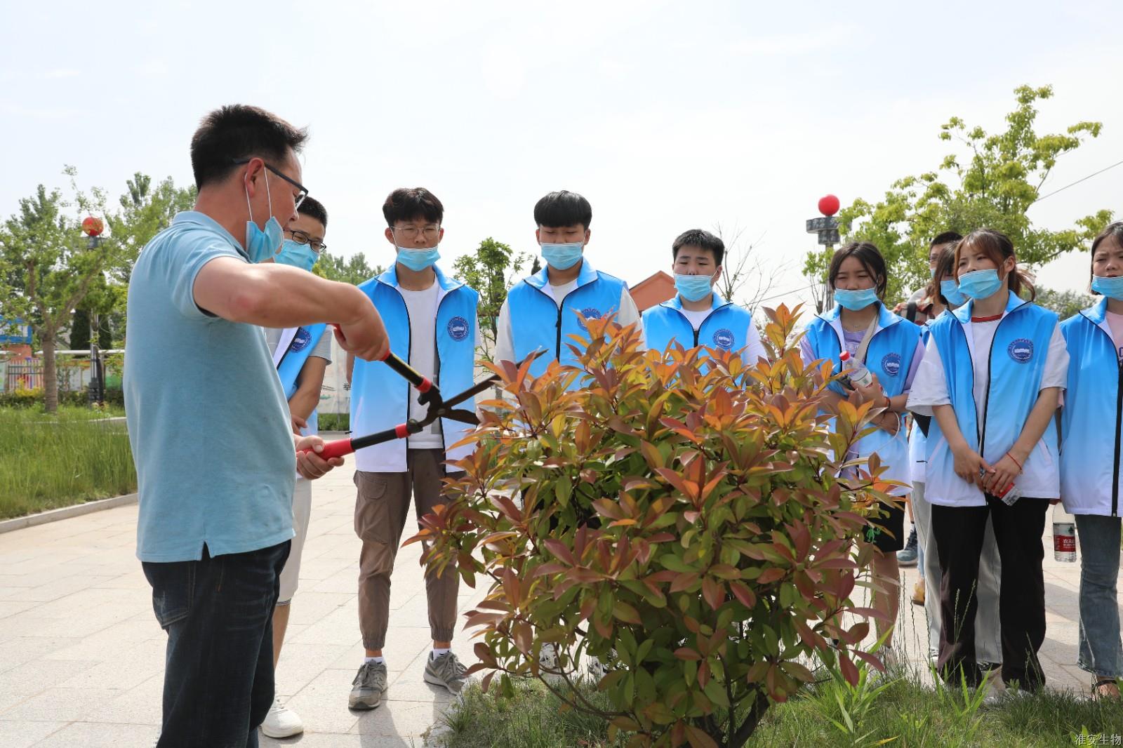 志愿服务队全体成员分成两队,分别在村中进行了修剪花木、宣传教育等活动。在修剪花木时,先由植物系孙其文教授对所需修剪的花木类型和要求进行讲解示范,随后植物系的志愿者们分组进行实践操作,遇到修剪不当之处,孙其文教授还不忘提醒纠正。在经过精细而严格的修剪后,原本生长杂乱、参差不齐的绿化呈现出整洁美观之感。另一队志愿者们则前往村中居民家里,挨家挨户为大家分发红十字会宣传册,并为年长的村民们讲解健康卫生知识,将更多安全常识科普给更多人们了解并重视。