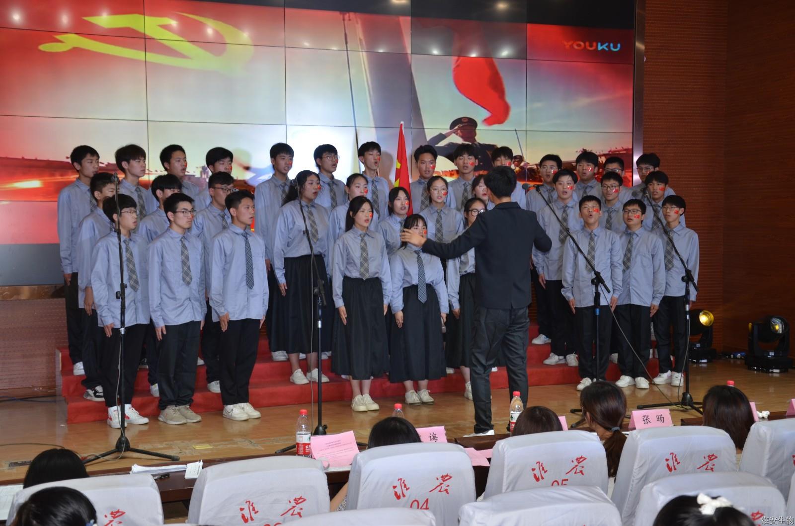 当晚,全校6个系部共11支参赛队伍在各班主任老师及团总支书记悉心指导下,着装整齐、精神饱满、井然有序。《歌唱祖国》、《我爱你中国》等歌曲表达了同学们对祖国的赤诚之心,对未来充满希望的美好心声;《打靶归来》、《祖国不会忘记》等歌曲引领全体师生仿佛回到了那段硝烟弥漫的岁月,感受着先辈们舍生取义、团结奋进的昂扬精神。机高2001班带来的《众人划桨开大船》,以新闻播报的手法,结合童声独唱、舞蹈、书法等多种独具匠心的表现形式,尽情抒发了青年一辈在党的号召下全心全意为人民服务、积极建设社会主义事业的无限豪情,赢得了台下阵阵掌声。经过激烈角逐,微高2002班带来的《听我说谢谢你》取得了第一名的好成绩。