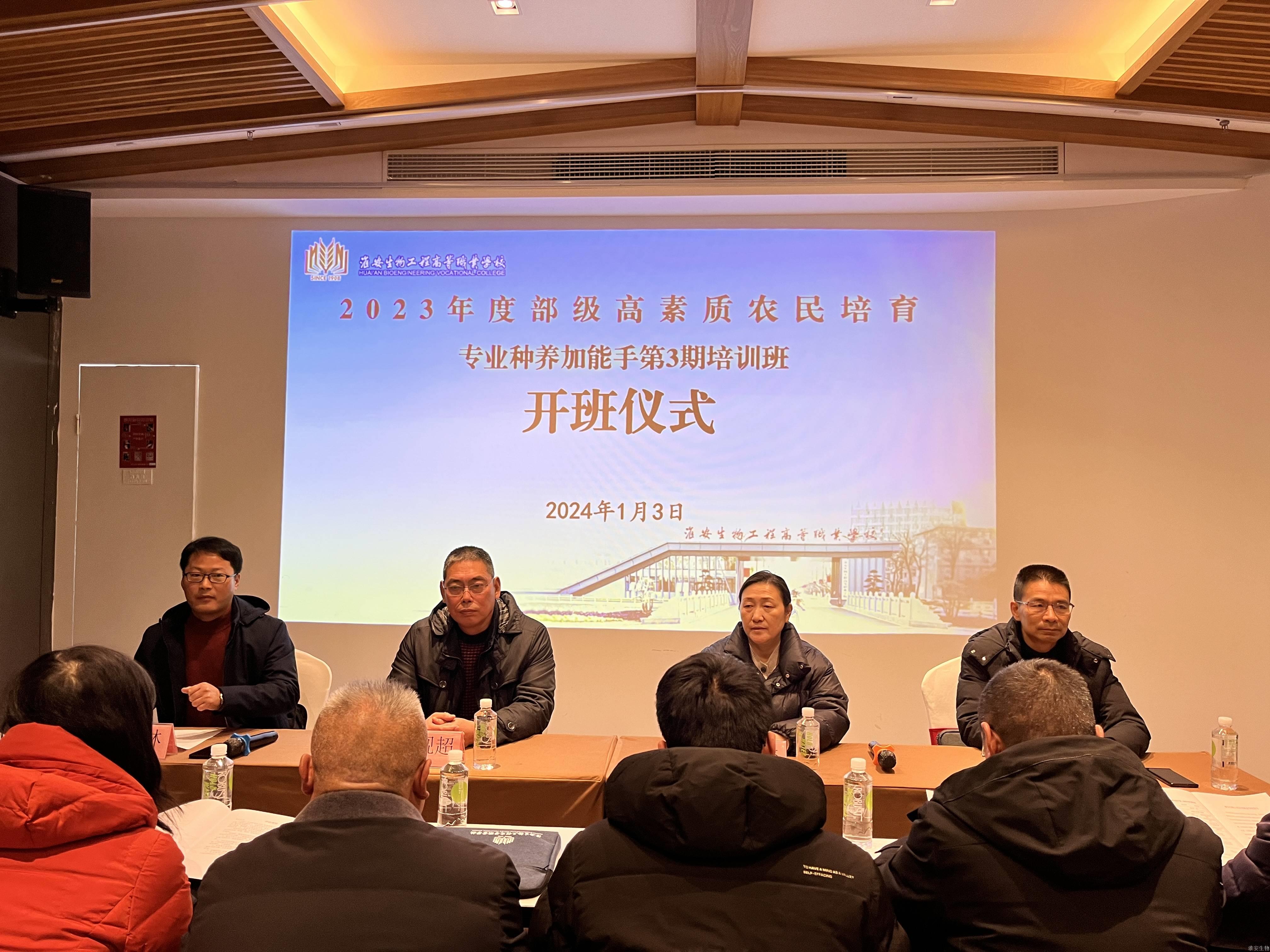 1月7日,由淮安生物工程学校承办的、为期5天的2023年度部级高素质农民培育种养加能手第3期培训班顺利落幕。来自洪泽区主要从事种植、养殖和农产品加工的82名学员参加了本次培训。洪泽区农广校校长王砚超、主任徐井风,淮安生物工程学校副校长禹立馨、成教处处长胡春林等出席了开班仪式。