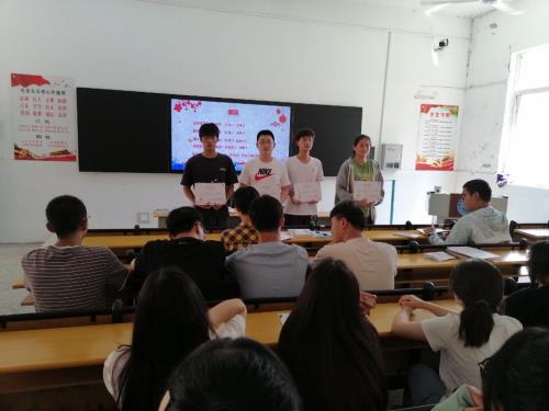 会议第一项议程是颁奖。在月考中取得总分前三和单科前三的17名同学接受了表彰,收获了奖状、奖品和掌声。接着,系部主任彭敏玲发表讲话。她分析了目前同学们的学习情况并提出了暑假期间的学习要求。最后,教务处处长丁宁发表讲话。他从同学们的长远发展出发,生动讲述了我校一些优秀毕业生的事迹,语重心长地对同学们提出了建议和期望。他说:劝君惜取少年时,同学们,要在最好年华里,努力学习本领,实现自己的美好梦想。