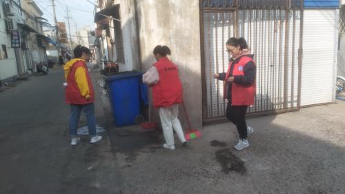 志愿者们动起来后,内心的热血便已为他们抵挡住了外界的冷气。他们走走停停,时不时与遇见的老人聊聊天,话话家常。扫帚不时的摆动,整洁了路缝里、花盆边和屋檐下,那些零碎的纸巾、烟头和塑料食品袋。人多力量大,二十多个人与八条街道,两小时便已完工。途中还额外的帮助社区委员宣传了通过二维码缴付社保的方法,增强了志愿者交涉与宣传的能力,可谓是收获颇丰。