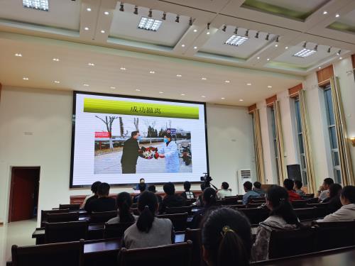 冯主任从疫情初期的科室培训演练、主动请战的原因、迎战新冠病毒的亲身经历、校园易感疾病知识等方面展开,娓娓道来、情真意切,作了一场生动的“抗疫”宣讲,使全体学生深受感动。