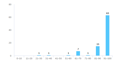 本次调查家校沟通满意度为91.3分,大部分家长对于我们的工作认可,也有极少部分家长并不满意,打分较低。