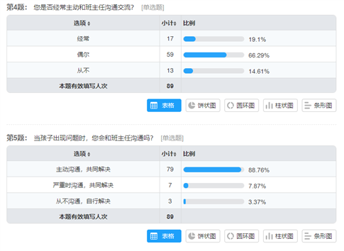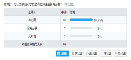 近日,我们向各家长群发放了家校沟通问卷调查,现回收问卷89份,具体情况分析如下:
