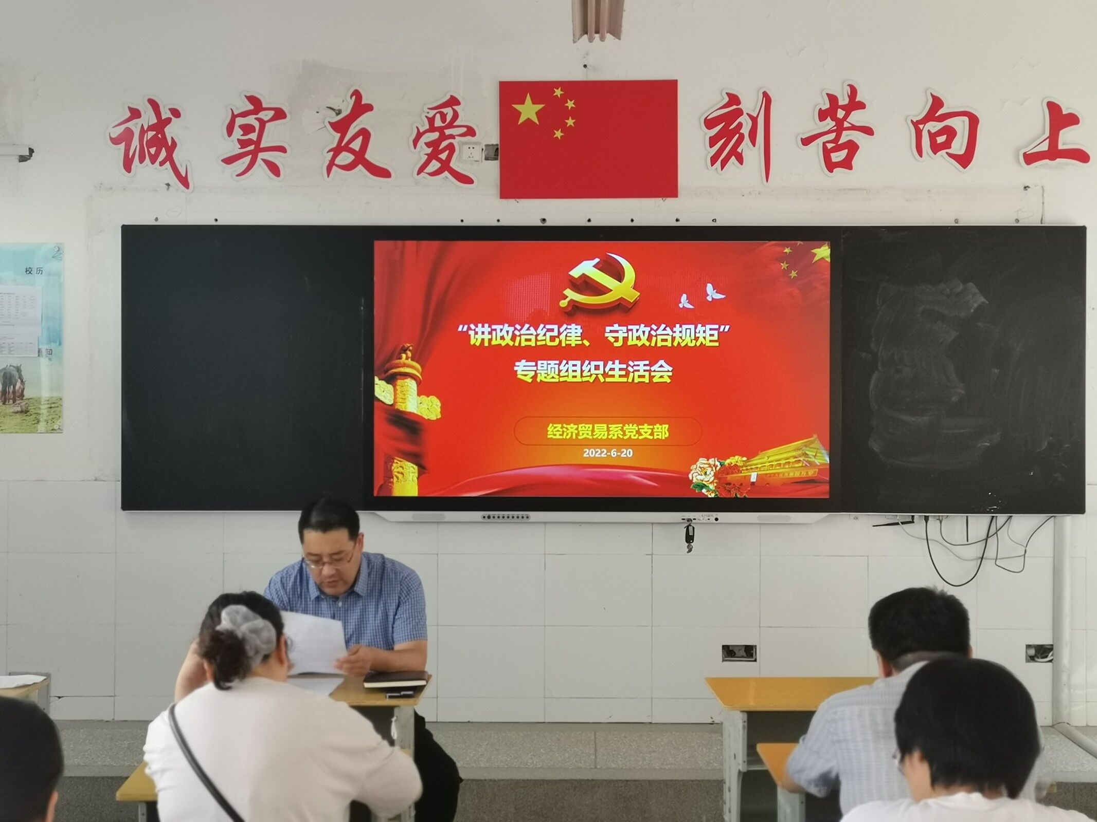 政治纪律是党最根本、最重要的纪律,政治规矩是最重要、最根本、最关键的规矩,为切实增强经济贸易系党支部全体党员讲政治纪律和守政治规矩意识,把思想统一到推动系部、学校高质量发展上来,按照校党委通知要求,6月20日下午,经济贸易系党支部召开“讲政治纪律、守政治规矩”专题组织生活会,会议由支部书记史忠良主持。