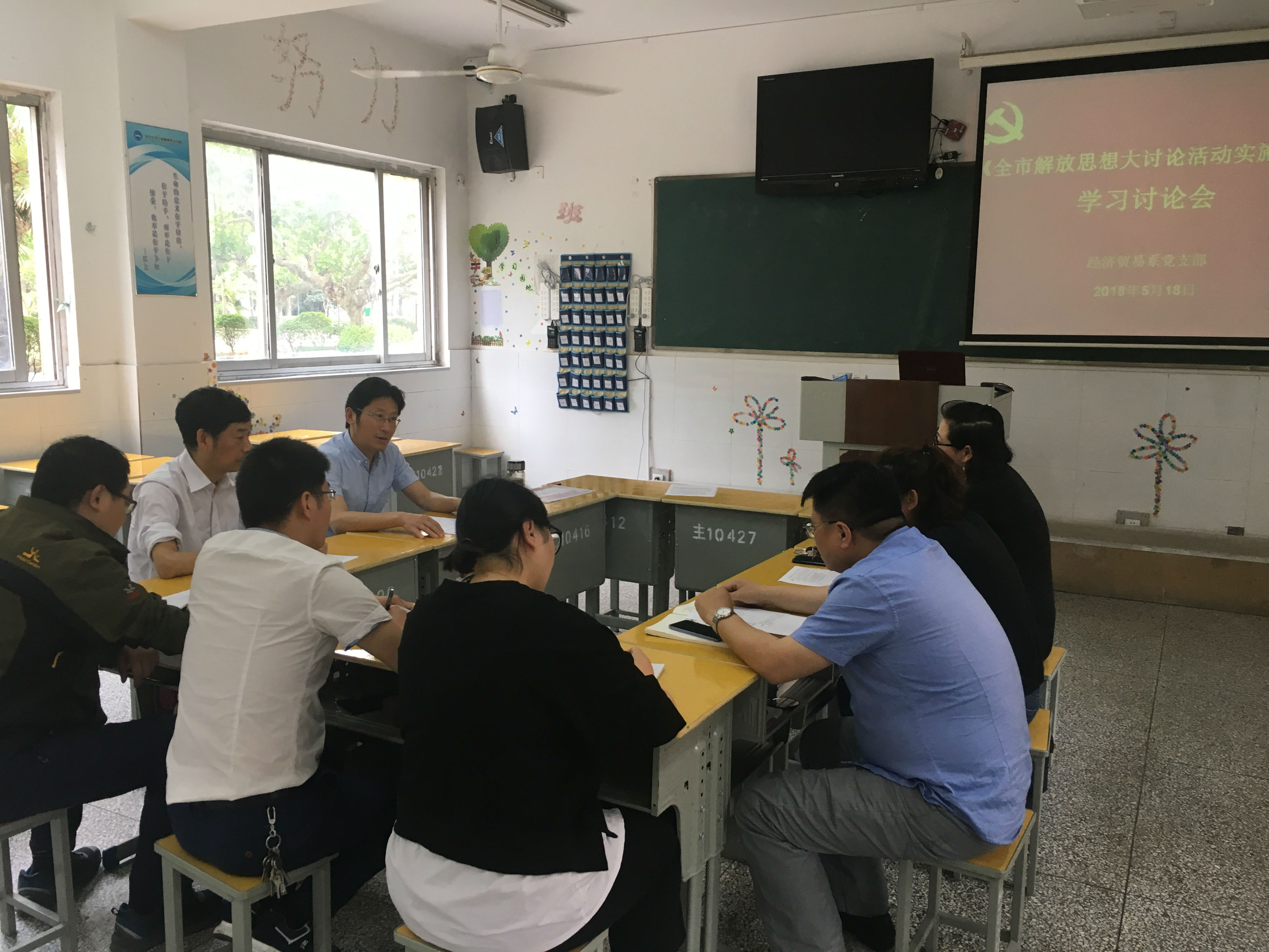 为深入贯彻党的十九大精神,认真落实市委“关于全市解放思想大讨论活动”的决策部署,根据校党委工作安排及要求,5月18日下午,经济贸易系党支部在主104教室召开了以“学习新思想,改革再出发,开放迈新步,发展高质量”为主题的学习讨论会。支部全体党员参加了会议。会议由经济贸易系党支部书记郭永生同志主持。