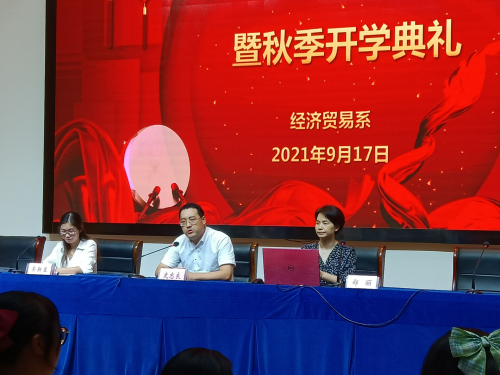 9月17日晚,淮安生物工程高等职业学校经济贸易系迎新生大会暨秋季开学典礼如期举行。参加本次大会的有,系部主任史忠良、副主任郑丽、荣新星,以及2021级全体新生。