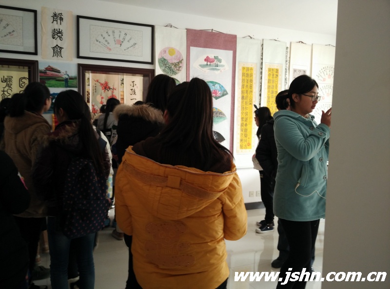 为了强化学生对中国传统文化教育的感知传承,经济贸易系于2015年12月15日中午,组织部分学生参观了戎宏全老师的书画展。