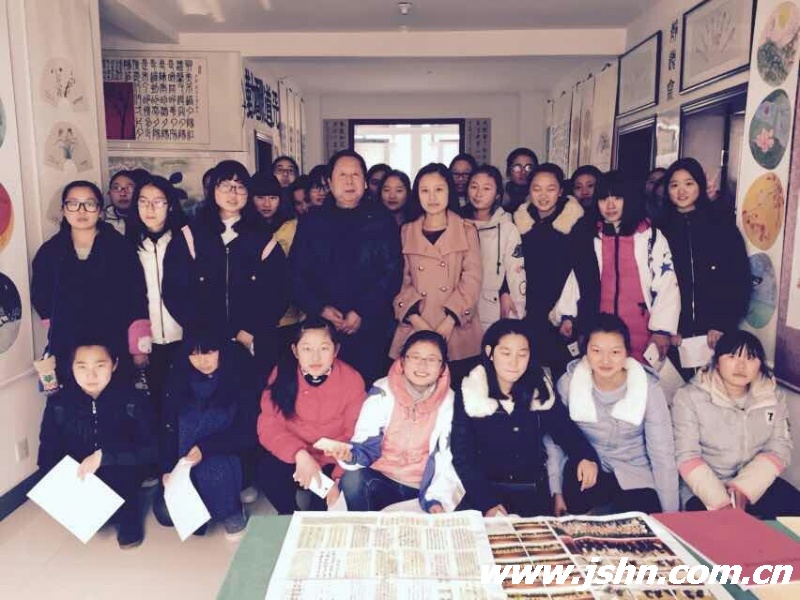 参观接近尾声,有的同学提议与戎老师合影。戎老师欣然同意,并语重心长地对同学们说:“任何一件事情的成功,都需要勤奋刻苦的努力,并坚持不懈,‘不叫一日闲过’。敬业乐业的精神永远是时代的主题。我的每一件作品,每一张奖状都是我用心的结果。希望同学们更加努力,为祖国,为学校增光添彩。愿同学们将来的发展‘青出于蓝而胜于蓝’。”