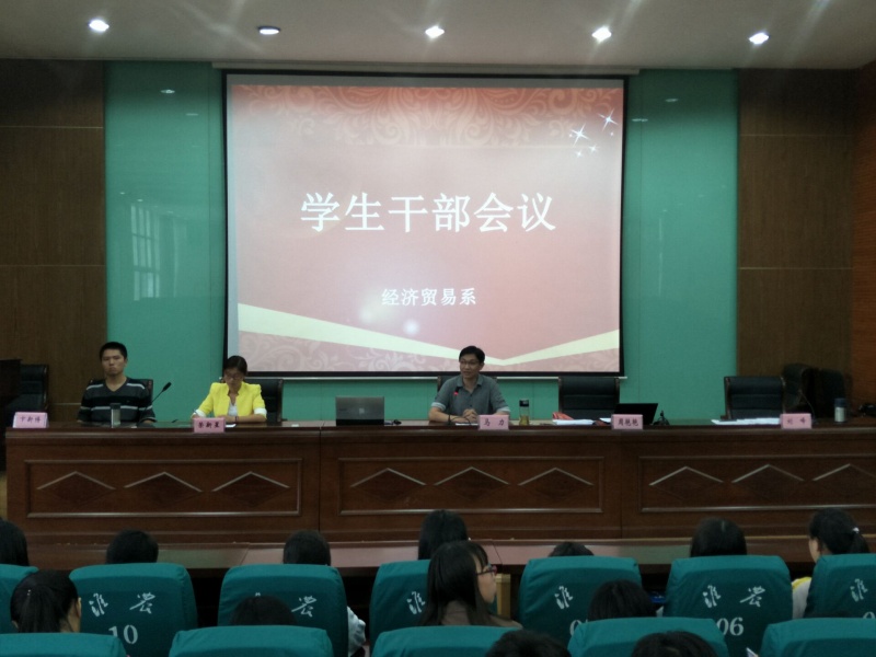 9月6日下午,经济贸易系在多功能报告厅召开学生干部会议。会议由马力副主任主持,主任助理周艳艳、学生管理负责人荣新星等老师,以及系学生会、系团委全体学生参加会议。