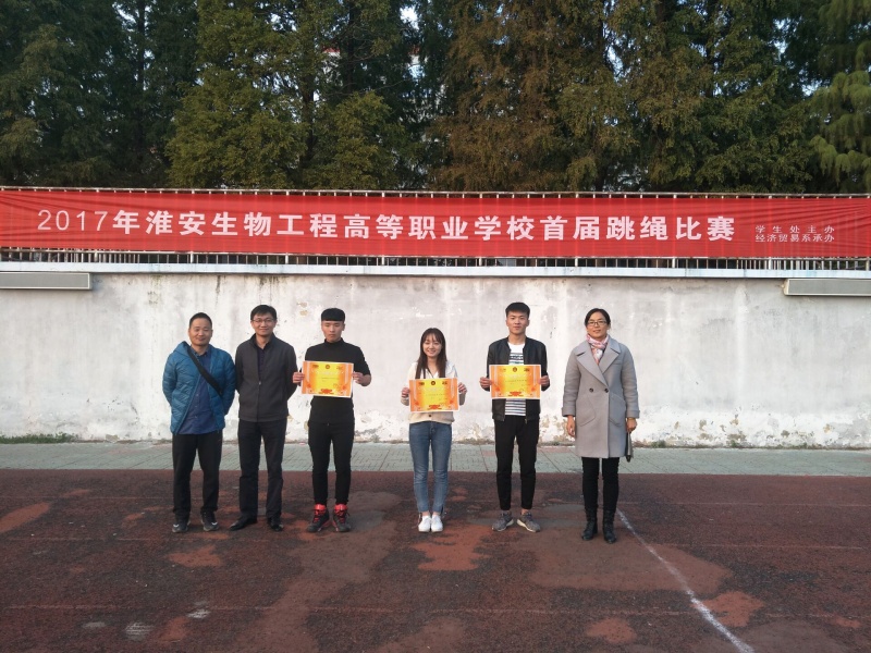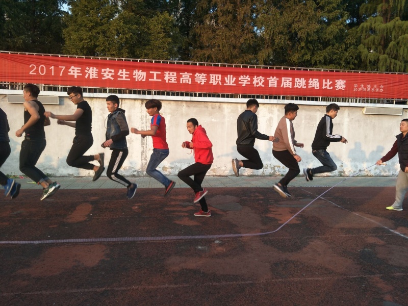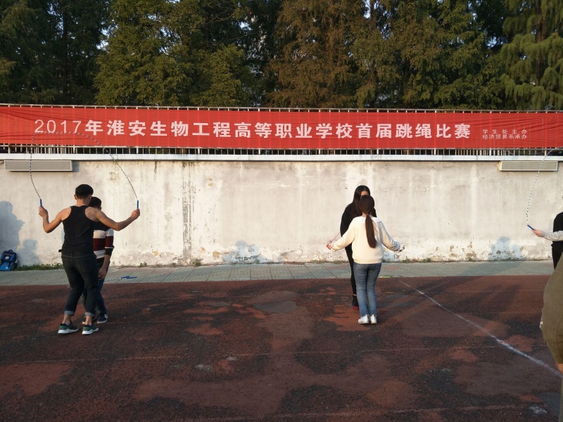 “顽强拼搏显身手,绳绳舞动展英姿”。为了进一步开展阳光体育运动,丰富校园文化生活,由学生工作处主办,经济贸易系承办的“淮安生物工程首届跳绳大赛”于10月31日16时在校田径场上隆重举行。