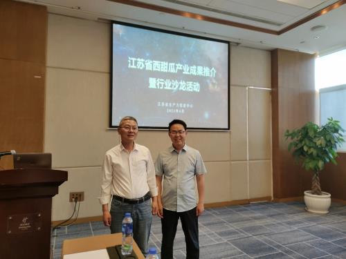 2023年6月8日,我校陈绕生、孙其文参加江苏省生产力促进中心在南京市江宁区举办的江苏省西甜瓜产业成果推介暨行业沙龙活动。本次活动有效地推动了产学研用的有效结合,加快科技成果向现实生产力转化。