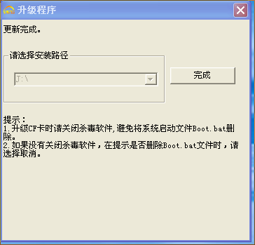 Step8:将诊断仪器中 CF 卡插入专用读卡器,连接电脑,而后双击此诊断程序升级包。确认盘符一致后点击确定,直至程序运行完毕。