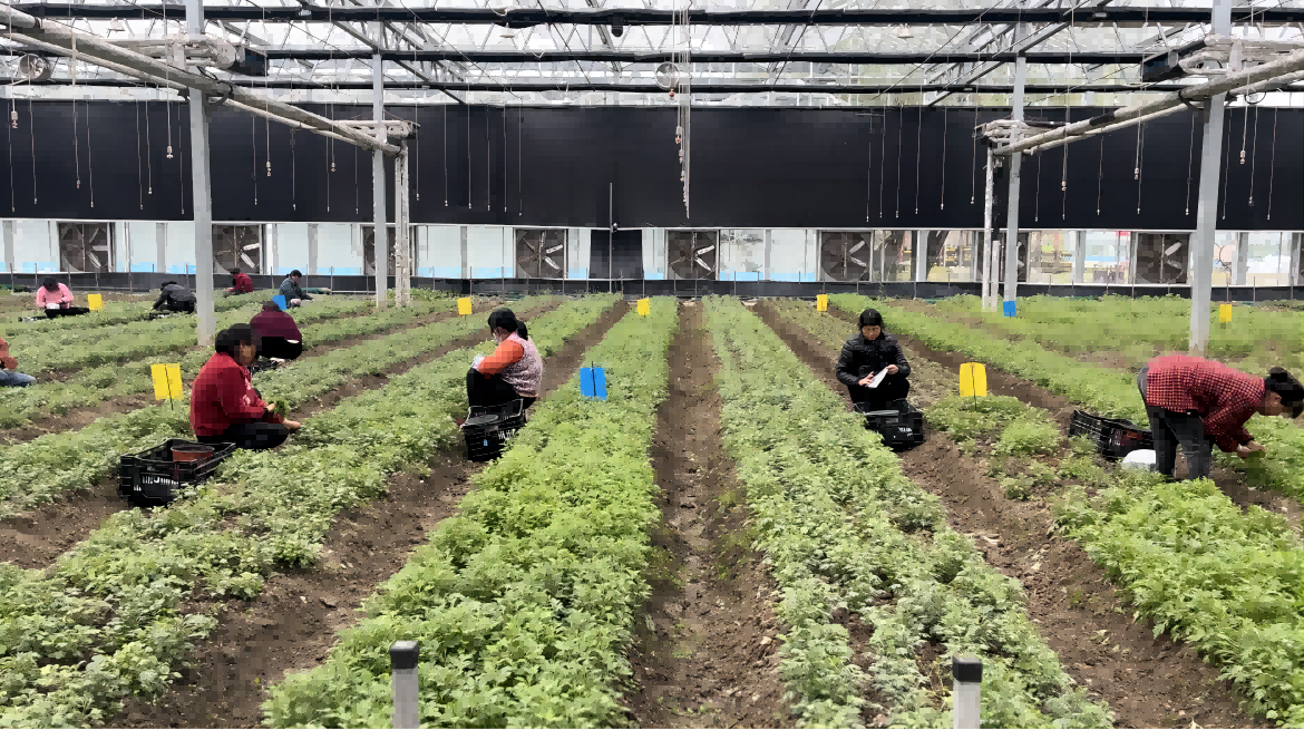 团队老师们走进温室大棚,仔细查看菊花生长情况,与基地管理人员进行了深入细致的交流,针对菊花嫁接、扦插、育种等问题,现场提出解决方案,并围绕如何进一步整合高校和地方资源,深入开展校地合作,促进农业科技成果精准落地,推进校地融合发展进行了热烈研讨。