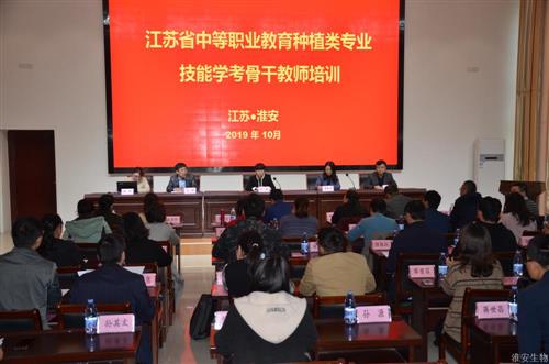 10月17日, 江苏省中等职业学校种植类技能学业水平考试骨干教师培训在农业实训中心124会议室举行。我校副校长李慧、盐城生物工程高等职业技术学校董晓鸣教授、我校植物工程系主任徐暄、副主任顾艳以及全省40多名考评员老师参加了此次培训。会议由江苏省学考种植类研究组副组长吴松主持。