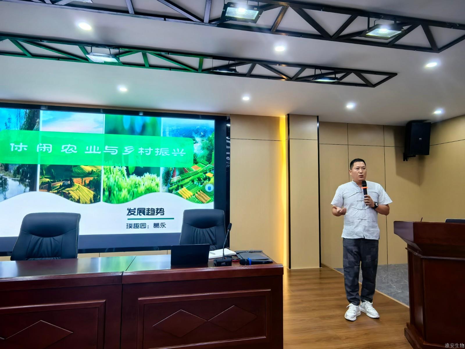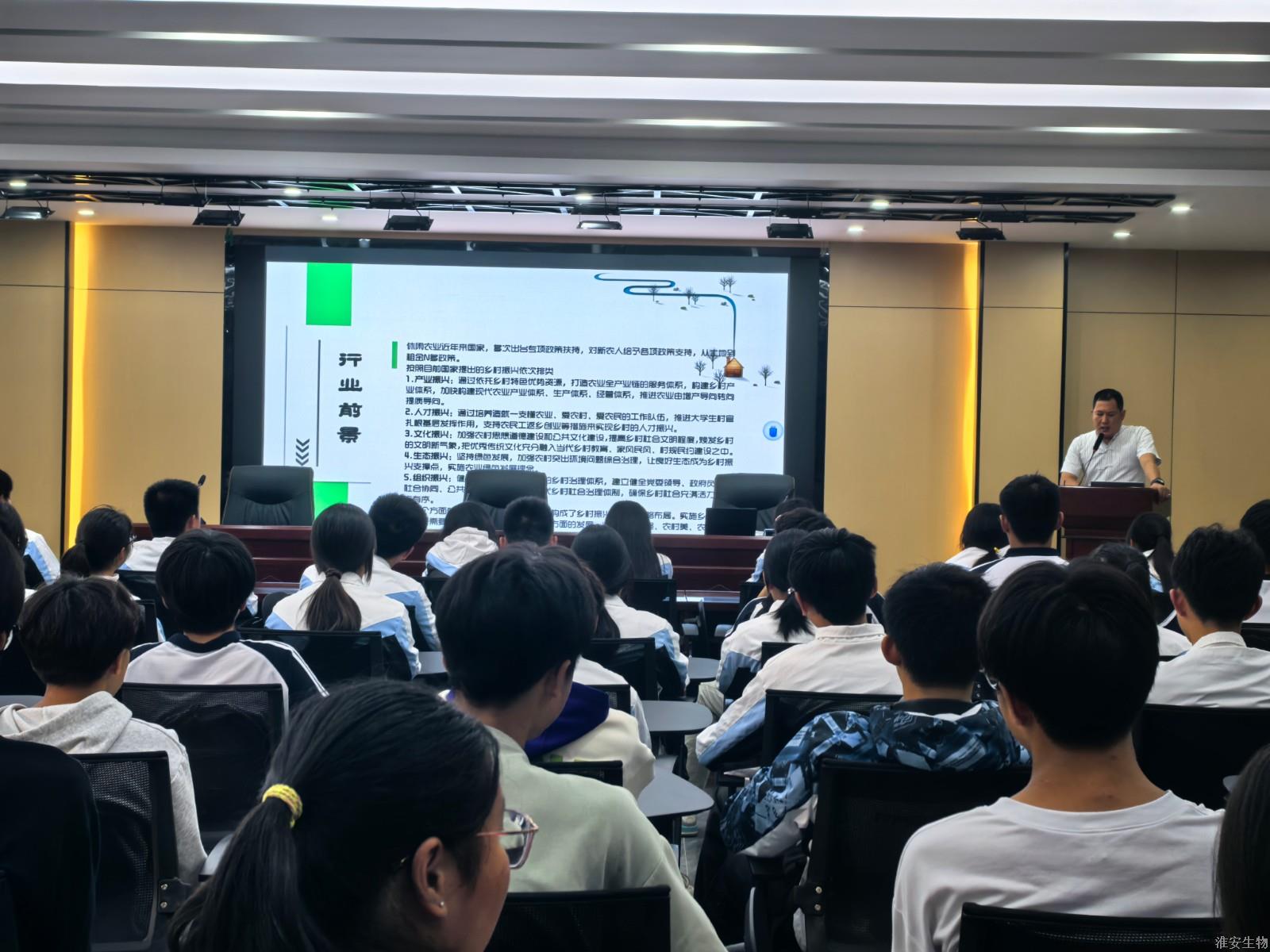 为了传授休闲农业领域的专业知识和实践经验,推动职业教育与乡村振兴战略的深度融合,淮安生物工程学校植物工程系于2024年9月26日下午在校乡村振兴直播基地会议室举办了一场“企业家进课堂”系列之《休闲农业与乡村振兴》的专题讲座。此次讲座特邀细数文旅公司董事长、台湾星期九生态庄园董事、璞趣亲子研学农乐园创始人、企业导师葛永为植物工程系2024级休闲农业经营与管理、园林技术、园艺技术等专业的同学讲授,会议由张浩然老师主持。